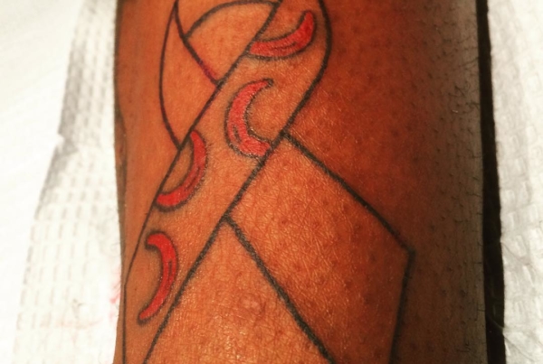 Sickle Cell Anemia ribbon on Vern for his mother today. #smokemdead #steadfasttattoo #walkin . . . . . ((¥)) #tattoos #btattooing #blackworkerssubmission #iblackwork #blackwork #blackworkers #inkstinctsubmission #blacktraditionals #BLACKTATTOOMAG #blxckink #tttism #TTTpublishing #greatattoo #blackflashwork #TattooLife #darkartists #blackworkershero #wiilsubmission
