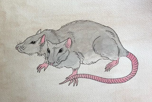 forgot the whiskers in my original post 😅 here’s a two faced rat (again) 🖖 #tattooapprentice #tattoodesign #rat #inkwork #watercolor #linework #oddities
