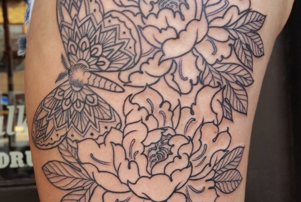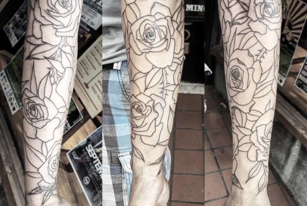 Just a start to Harry’s half sleeve of roses. Looking forward to finishing.