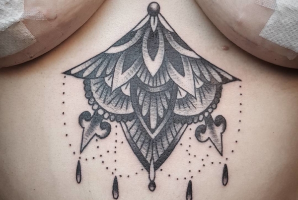 A little under bosom action. Thanks Gab! Good hangs per usual. #underboobtattoo #artdeco #artdecomandala