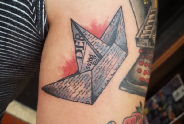 This is the newspaper boat from the movie “It”. I tried including headlines from the movie and the town in which it took place, Derry. This is part of Sarah’s Stephen King sleeve that I’ve been working on. #it #stephenking