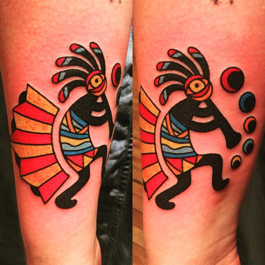 Kokopelli for @kennedy.cottrell last week🙏🏼 #smokemdead #steadfasttattoo