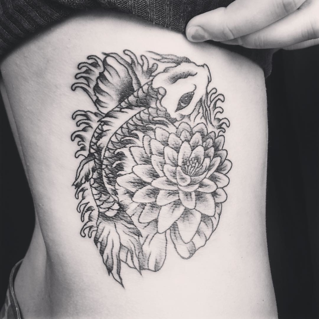 Veronica snaked this koi today✊🏼terrible picture I know. #smokemdead #steadfasttattoo